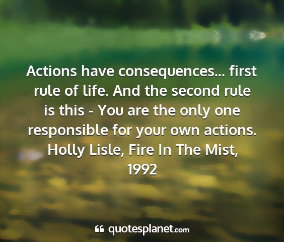 Actions have consequences... first rule of life. And the second rule is this - You are the only one responsible for your own actions.Holly Lisle, Fire In The Mist, 1992