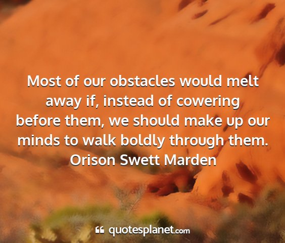 Most of our obstacles would melt away if, instead of cowering before them, we should make up our minds to walk boldly through them.Orison Swett Marden