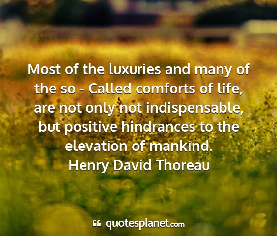 Most of the luxuries and many of the so - Called comforts of life, are not only not indispensable, but positive hindrances to the elevation of mankind.Henry David Thoreau