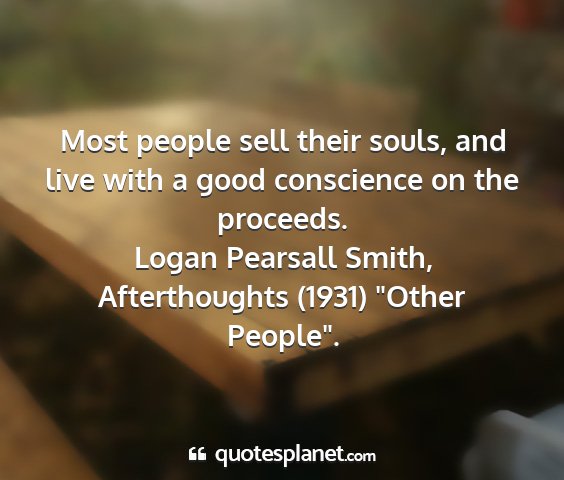 Most people sell their souls, and live with a good conscience on the proceeds.Logan Pearsall Smith, Afterthoughts (1931) "Other People".