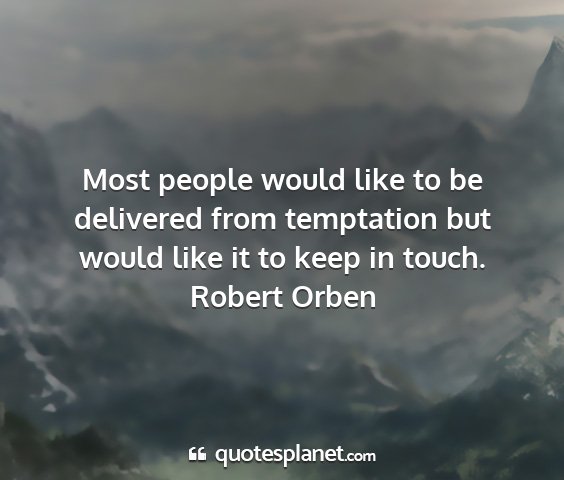 Most people would like to be delivered from temptation but would like it to keep in touch.Robert Orben