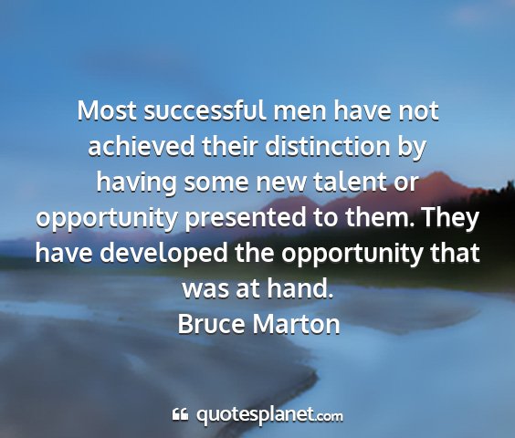 Most successful men have not achieved their distinction by having some new talent or opportunity presented to them. They have developed the opportunity that was at hand.Bruce Marton