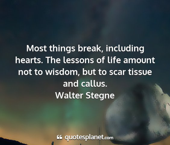 Most things break, including hearts. The lessons of life amount not to wisdom, but to scar tissue and callus.Walter Stegne