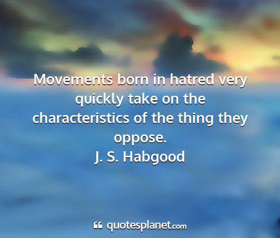 Movements born in hatred very quickly take on the characteristics of the thing they oppose.J. S. Habgood
