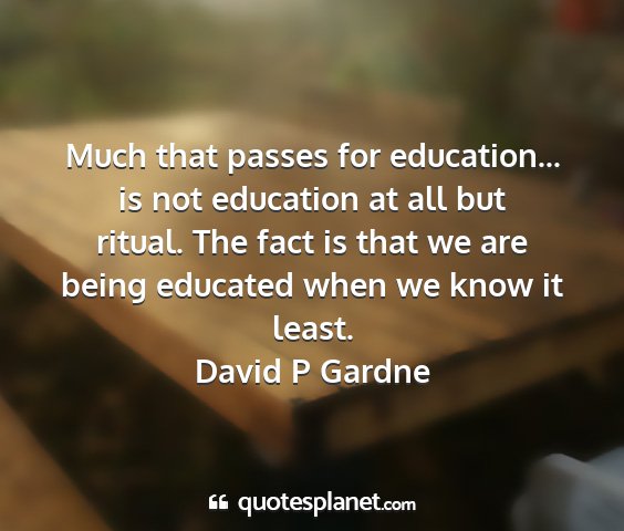 Much that passes for education... is not education at all but ritual. The fact is that we are being educated when we know it least.David P Gardne