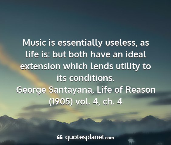 Music is essentially useless, as life is: but both have an ideal extension which lends utility to its conditions.George Santayana, Life of Reason (1905) vol. 4, ch. 4