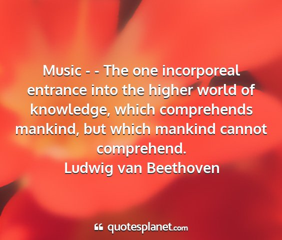 Music - - The one incorporeal entrance into the higher world of knowledge, which comprehends mankind, but which mankind cannot comprehend.Ludwig van Beethoven