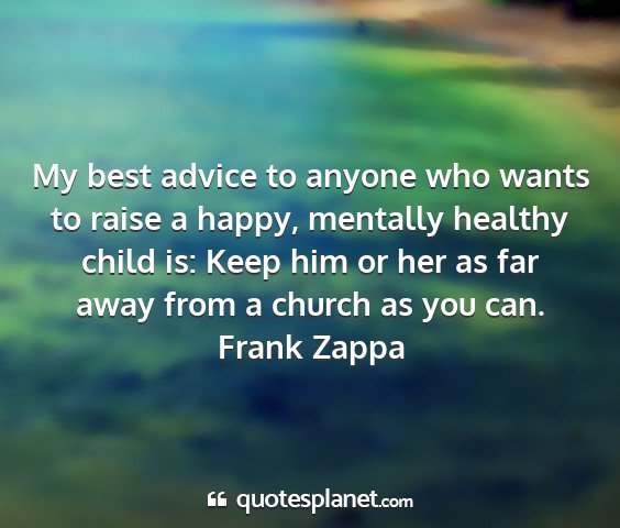 My best advice to anyone who wants to raise a happy, mentally healthy child is: Keep him or her as far away from a church as you can.Frank Zappa