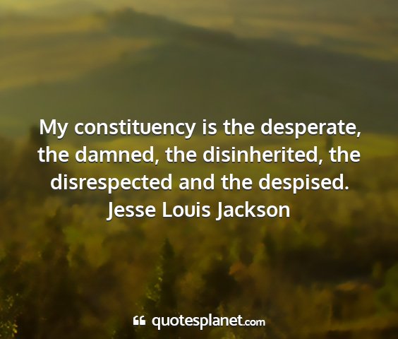 My constituency is the desperate, the damned, the disinherited, the disrespected and the despised.Jesse Louis Jackson