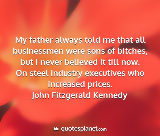My father always told me that all businessmen were sons of bitches, but I never believed it till now. On steel industry executives who increased prices.John Fitzgerald Kennedy