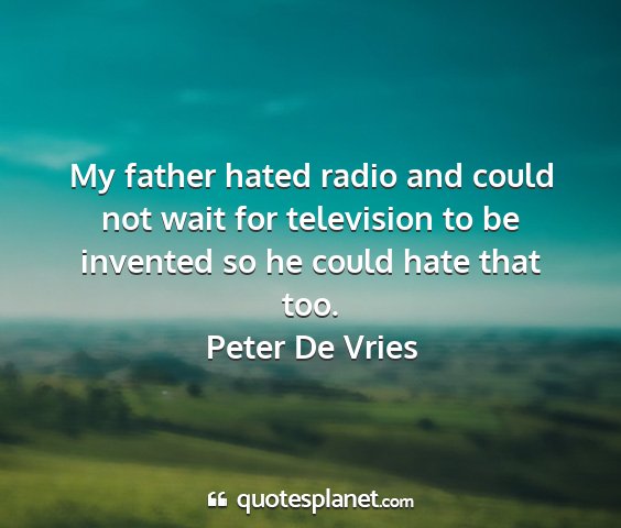 My father hated radio and could not wait for television to be invented so he could hate that too.Peter De Vries