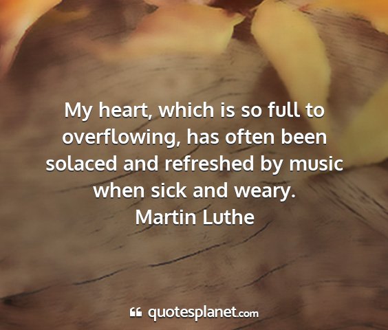 My heart, which is so full to overflowing, has often been solaced and refreshed by music when sick and weary.Martin Luthe