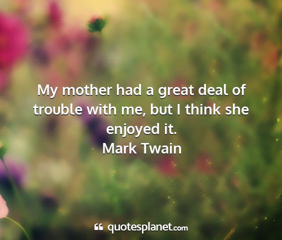 My mother had a great deal of trouble with me, but I think she enjoyed it.