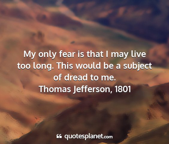 My only fear is that I may live too long. This would be a subject of dread to me.Thomas Jefferson, 1801