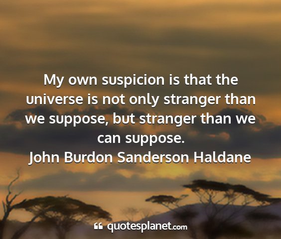 My own suspicion is that the universe is not only stranger than we suppose, but stranger than we can suppose.John Burdon Sanderson Haldane