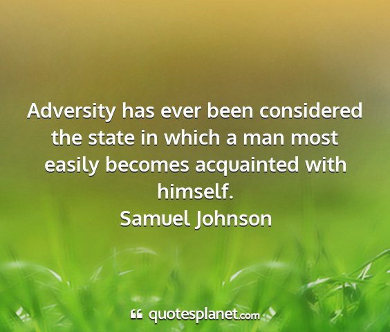 Adversity has ever been considered the state in which a man most easily becomes acquainted with himself.Samuel Johnson