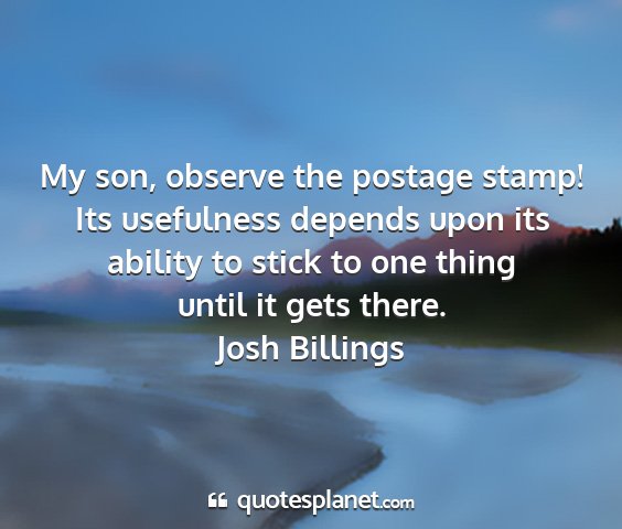 My son, observe the postage stamp! Its usefulness depends upon its ability to stick to one thing until it gets there.Josh Billings