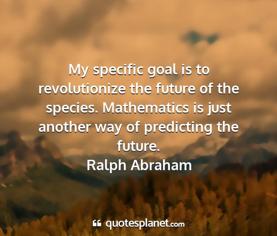 My specific goal is to revolutionize the future of the species. Mathematics is just another way of predicting the future.Ralph Abraham