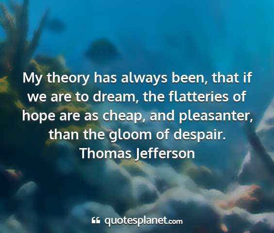 My theory has always been, that if we are to dream, the flatteries of hope are as cheap, and pleasanter, than the gloom of despair.Thomas Jefferson