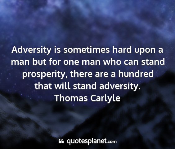 Adversity is sometimes hard upon a man but for one man who can stand prosperity, there are a hundred that will stand adversity.Thomas Carlyle