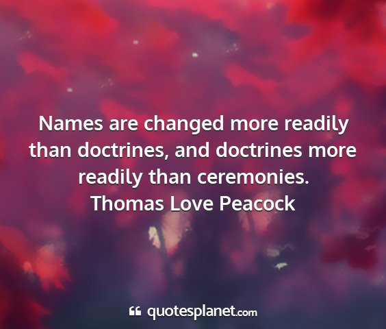 Names are changed more readily than doctrines, and doctrines more readily than ceremonies.Thomas Love Peacock