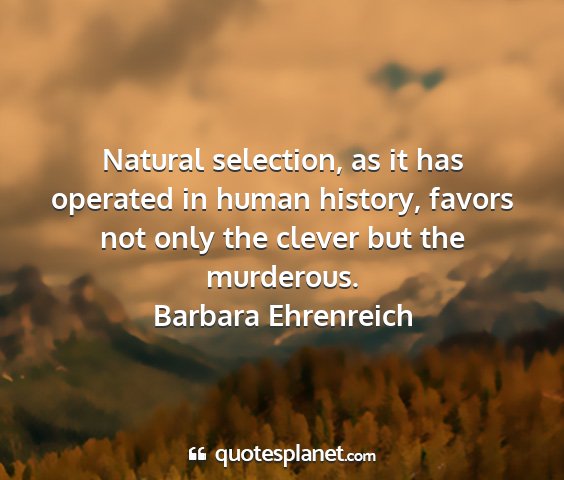 Natural selection, as it has operated in human history, favors not only the clever but the murderous.Barbara Ehrenreich
