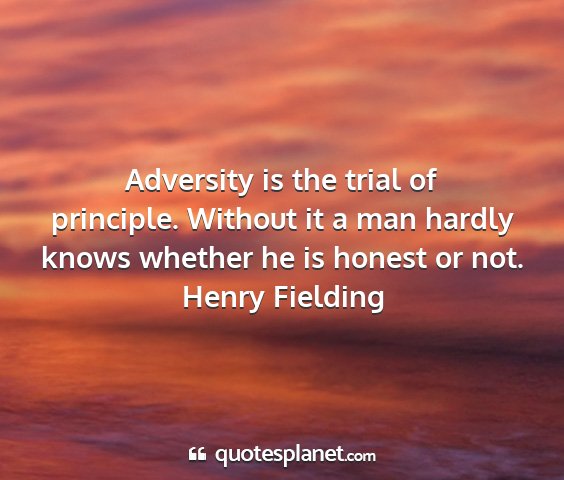 Adversity is the trial of principle. Without it a man hardly knows whether he is honest or not.Henry Fielding