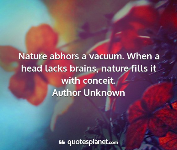 Nature abhors a vacuum. When a head lacks brains, nature fills it with conceit.