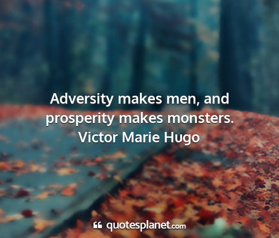 Adversity makes men, and prosperity makes monsters.