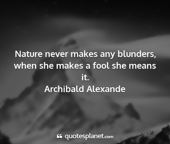 Nature never makes any blunders, when she makes a fool she means it.