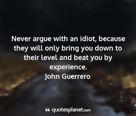 Never argue with an idiot, because they will only bring you down to their level and beat you by experience.John Guerrero