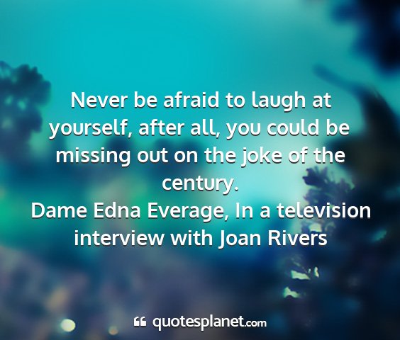 Never be afraid to laugh at yourself, after all, you could be missing out on the joke of the century.Dame Edna Everage, In a television interview with Joan Rivers