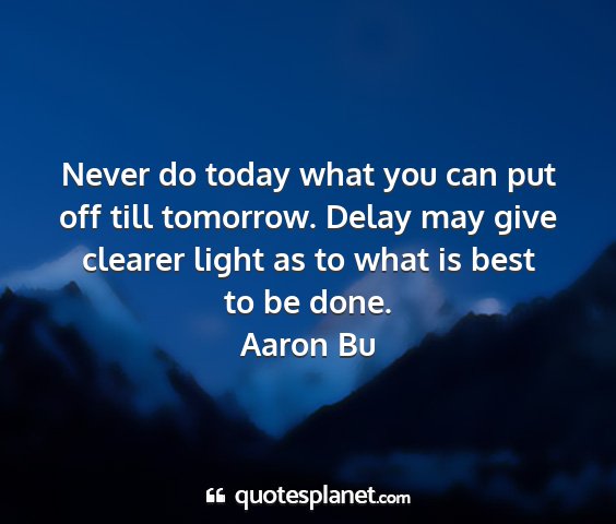 Never do today what you can put off till tomorrow. Delay may give clearer light as to what is best to be done.Aaron Bu