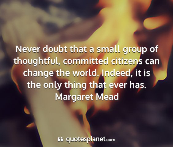 Never doubt that a small group of thoughtful, committed citizens can change the world. Indeed, it is the only thing that ever has.Margaret Mead