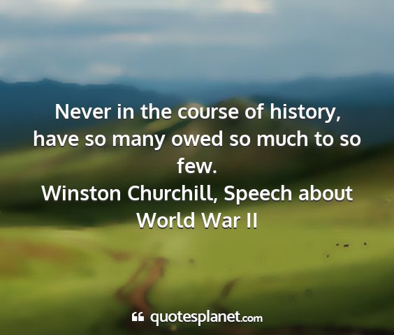Never in the course of history, have so many owed so much to so few.Winston Churchill, Speech about World War II