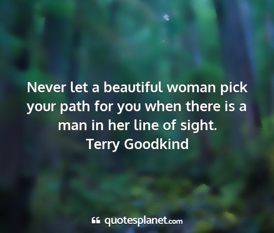 Never let a beautiful woman pick your path for you when there is a man in her line of sight.Terry Goodkind