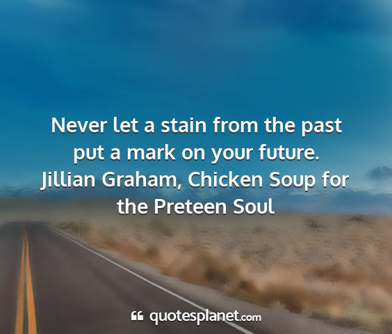 Never let a stain from the past put a mark on your future.Jillian Graham, Chicken Soup for the Preteen Soul