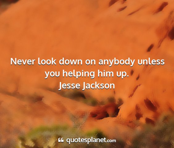 Never look down on anybody unless you helping him up.