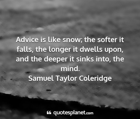 Advice is like snow; the softer it falls, the longer it dwells upon, and the deeper it sinks into, the mind.Samuel Taylor Coleridge