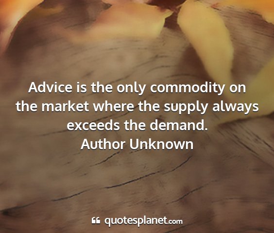 Advice is the only commodity on the market where the supply always exceeds the demand.