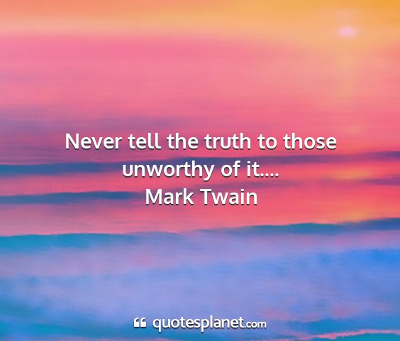 Never tell the truth to those unworthy of it....