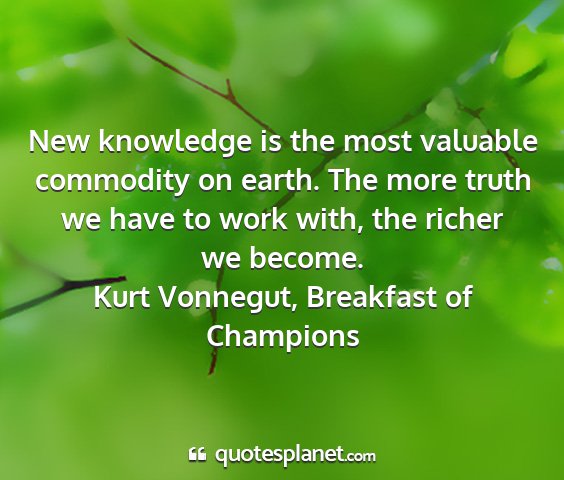 New knowledge is the most valuable commodity on earth. The more truth we have to work with, the richer we become.Kurt Vonnegut, Breakfast of Champions