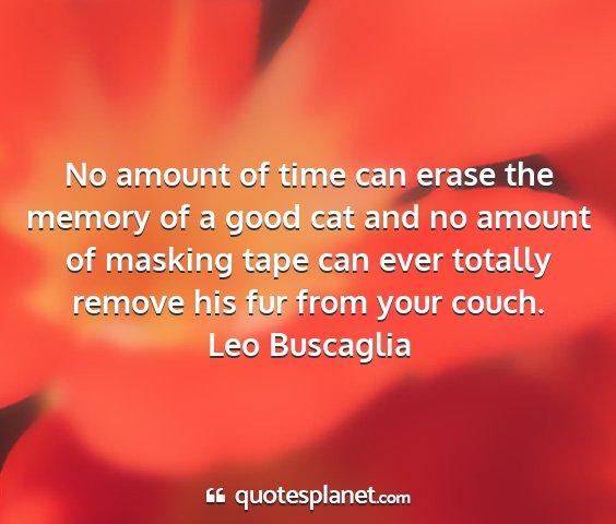 No amount of time can erase the memory of a good cat and no amount of masking tape can ever totally remove his fur from your couch.Leo Buscaglia