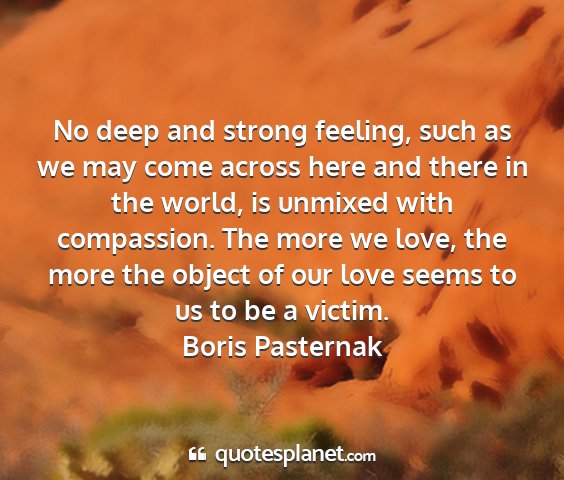 No deep and strong feeling, such as we may come across here and there in the world, is unmixed with compassion. The more we love, the more the object of our love seems to us to be a victim.Boris Pasternak