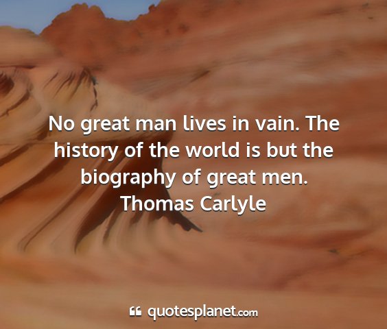 No great man lives in vain. The history of the world is but the biography of great men.Thomas Carlyle