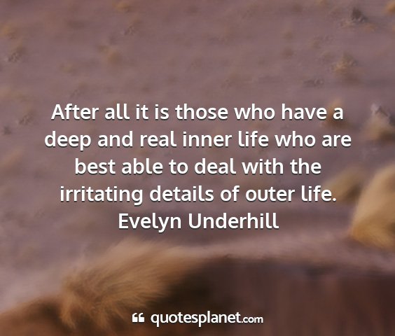 After all it is those who have a deep and real inner life who are best able to deal with the irritating details of outer life.Evelyn Underhill