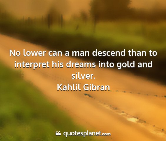No lower can a man descend than to interpret his dreams into gold and silver.