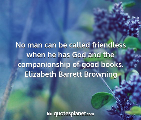 No man can be called friendless when he has God and the companionship of good books.Elizabeth Barrett Browning