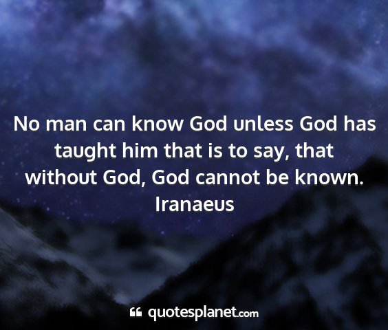 No man can know God unless God has taught him that is to say, that without God, God cannot be known.Iranaeus