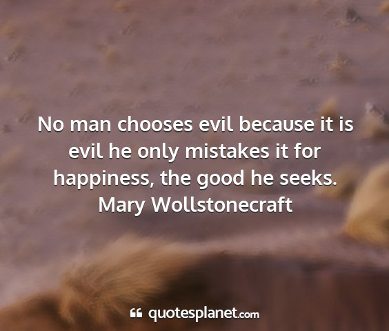 No man chooses evil because it is evil he only mistakes it for happiness, the good he seeks.Mary Wollstonecraft